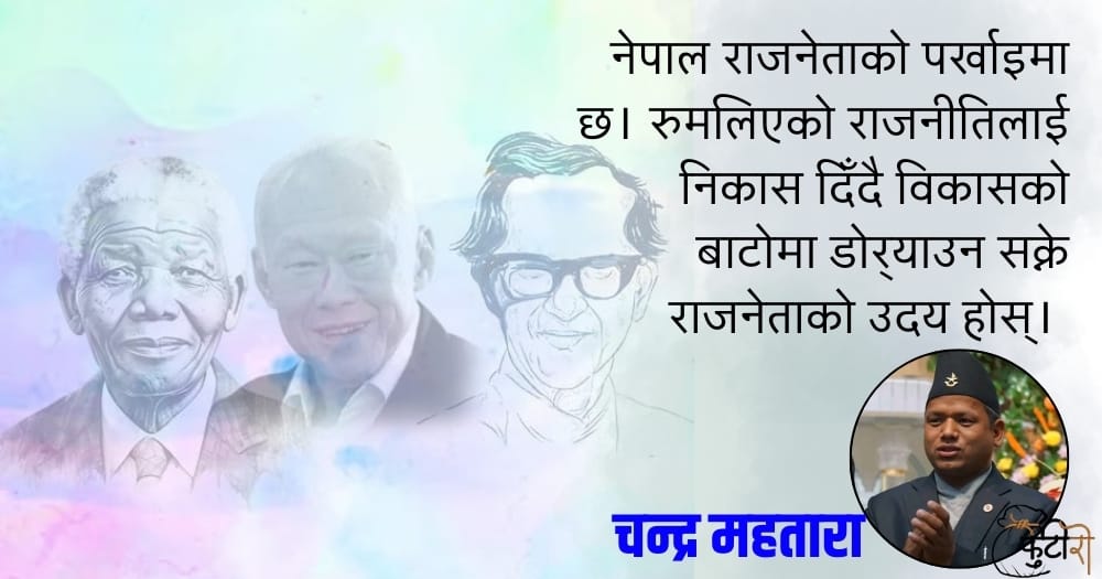 नेपालको समकालीन राजनीतिमा राजनीतिक व्यक्तित्व बन्न सजिलो छ। एउटा चुनाव जिते वा गुटको हर्ताकर्ता बने पुग्छ। गहन अध्ययन, समाजप्रतिको चिन्तन, जनताप्रतिको दायित्वबोध आवश्यक पर्दैन। विश्व