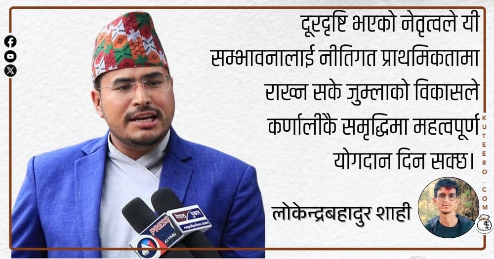 प्रिय ज्ञानेन्द्र जी राष्ट्रिय प्रजातन्त्र पार्टीका प्रवक्ता एवं जुम्ला जिल्लाबाट राप्रपाका उम्मेदवार बन्नु भएका ज्ञानेन्द्र शाही तपाईं यही फागुन २१ गते सम्पन्न भएको निर्वाचनमा प्रत्यक्ष
