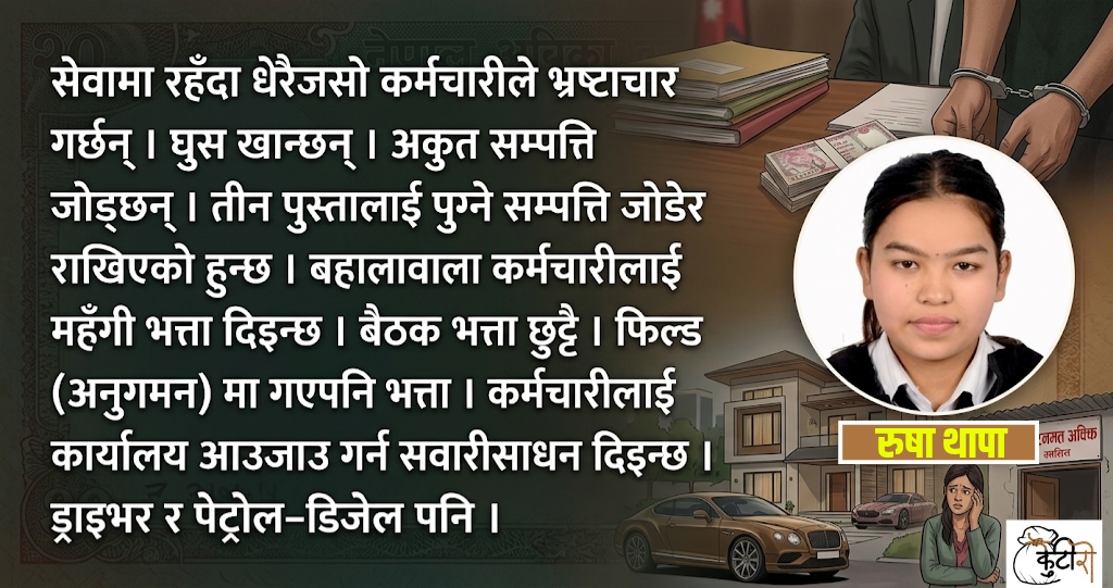 सरकारी कर्मचारी सेवामा रहँदा जोड्छन् अकुत सम्पत्ति, अवकाशपछि समेत उत्तिकै पेन्सन र सेवासुविधा !
