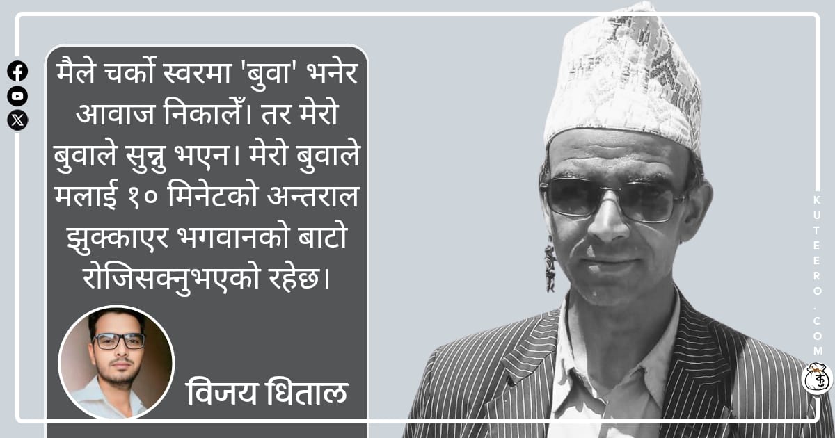 स्वर्गीय बुवा हजुर आउनु भएन त। आज सात दिन भयो, यता हामी पर्खिरहेका छौं। २०८२ साल मंसिर १० गते एका बिहानै मेरो घरबाट फोन आयो। फोन आएको थियो। मलाई जन्म दिने मेरी आमाको फोनमा भएको कुरा, “भाउअ:अ, बुवाको बीमाको कार्ड पठाइदे त हुन्छ मम्मी” भनेर फोन राखेँ। एकछिन पछि छिटोछिटो पठाइदे भन्ने खबर आयो।