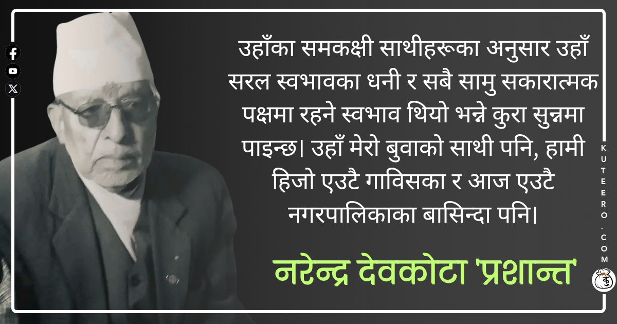 पछिल्लो समयमा जुम्लाको चिसो हावापानी र स्वास्थ्य उपचार गर्न सहज हुने भएकोले बाँकेको राँझा एअरपोर्टमा बस्दै आउनु भएको थियो। मेरो राँझा एअरपोर्टमा जाँदा–आउँदा भेट भइरहन्थ्यो। मेरो बुवा उहाँको संगती भएकोले उहाँले मलाई परबाट देख्नेबित्तिकै नजिकै आएर सञ्चो–बिसञ्चो सोध्दै भलाकुसारी गर्नुहुन्थ्यो। म पनि अग्रज भएकोले सकेसम्म र जानेसम्मको सत्कार र भलिभाँति गर्थे नै।