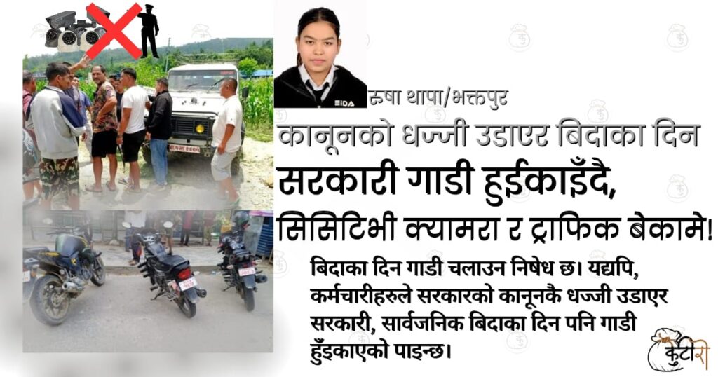 कानूनको धज्जी उडाएर बिदाका दिन सरकारी गाडी हुईकाइँदै, सिसिटिभी क्यामरा र ट्राफिक बेकामे!