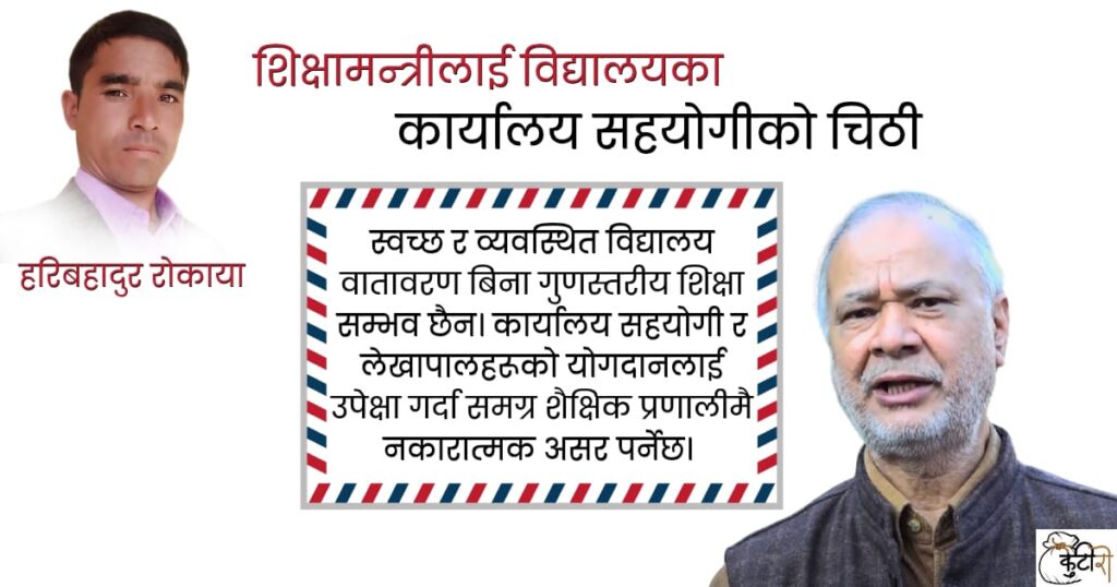 शिक्षामन्त्रीलाई विद्यालयका कार्यालय सहयोगीको चिठी