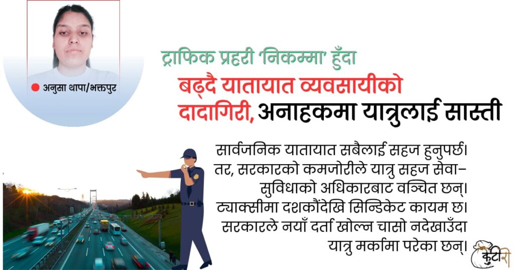 ट्राफिक प्रहरी ‘निकम्मा’ हुँदा बढ्दै यातायात व्यवसायीको दादागिरी, यात्रुले अनाहकमा पाउँदै सास्ती