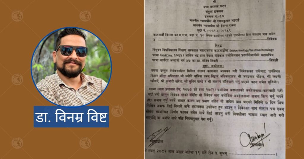 अस्थायी आदेश वा आरोप मात्रका आधारमा चिकित्सकको व्यक्तिगत र पेशागत छविमा गम्भीर आघात पुग्ने खतरा रहन्छ। कानुनले दोषी प्रमाणित नभएसम्म कुनै पनि व्यक्तिलाई निर्दोष मान्ने सिद्धान्तलाई सम्मान गर्नुपर्छ। उपभोक्ता हित संरक्षण मञ्चले चर्चित चिकित्सक डा. सञ्जीव तिवारीविरुद्ध अदालतको अवहेलनाको मुद्दा दायर गरेको समाचार सार्वजनिक भएको छ। मञ्चले उनीविरुद्ध एक वर्ष कैद र १० हजार रुपैयाँ […]