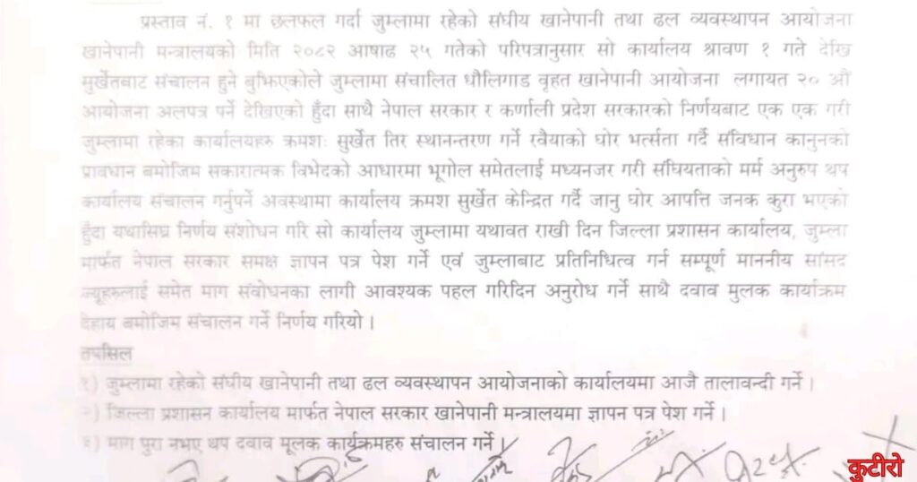 संघीय आयोजना कार्यालय सुर्खेत सार्ने निर्णयको विरोधमा जुम्लामा तालाबन्दी र दबाबमूलक आन्दोलन घोषणा