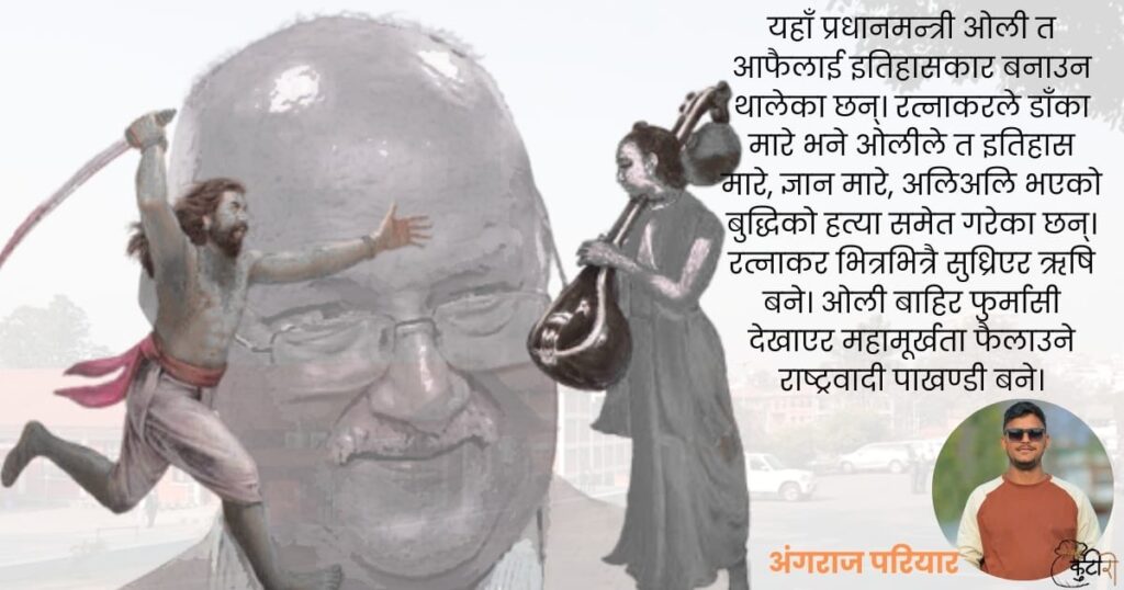 यदि साँचो इतिहास लेखिहाले भने, भीष्म पितामह गुल्मीका थिए, कृष्णको बास झापामा थियो, कर्णको तीर–खाल अभ्यास रोल्पामा भएको थियो र दुर्गा भगवती पनि एमाले महिला संगठनकी संस्थापक सदस्य थिइन्। विषयवस्तुमा प्रवेश गर्नुभन्दा पहिला डाँका भनिने रत्नाकरको कथा बाट सुरु गरौं । एक समयको कुरा हो, भील समुदायमा जन्मिएका एक डाँका थिए, उनको नाम थियो रत्नाकर […]