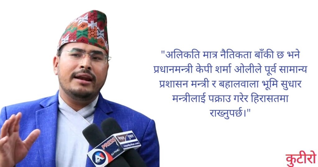 अडियोमार्फत सार्वजनिक भएको चर्चित घुसकाण्डले नेपालको राजनीतिक वृत्तमा तहल्का मच्चाइरहेका बेला राष्ट्रिय प्रजातन्त्र पार्टी (राप्रपा) का तत्कालीन प्रवक्ता तथा प्रतिनिधि सभा सदस्य ज्ञानेन्द्र शाहीले प्रधानमन्त्री केपी शर्मा ओलीलाई कडा चुनौती दिएका छन्। शाहीले सामाजिक सञ्जालमार्फत लेखिएको एक पोस्टमा अडियोमा घुस लेनदेनको प्रमाण खुलेको भन्दै तत्कालीन सामान्य प्रशासन मन्त्री र तत्कालीन बहालवाला भूमि सुधार मन्त्रीलाई पक्राउ […]