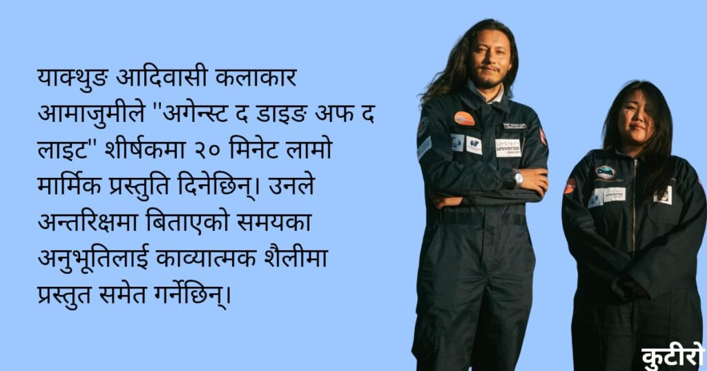 याक्थुङ आदिवासी कलाकार आमाजुमीले “अगेन्स्ट द डाइङ अफ द लाइट” शीर्षकमा २० मिनेट लामो मार्मिक प्रस्तुति दिनेछिन्। उनले अन्तरिक्षमा बिताएको समयका अनुभूतिलाई काव्यात्मक शैलीमा प्रस्तुत गर्नेछिन्। आमाजुमी यस्ता एनालग अन्तरिक्ष परियोजनामा सहभागी हुने पहिलो याक्थुङ आदिवासी कलाकार बनेकी छन्। कला र विज्ञानको संगममा आधारित परियोजना ‘ए स्टडी इन आइसोलेसन’ को विश्व प्रिमियर आगामी जुलाई २६, […]