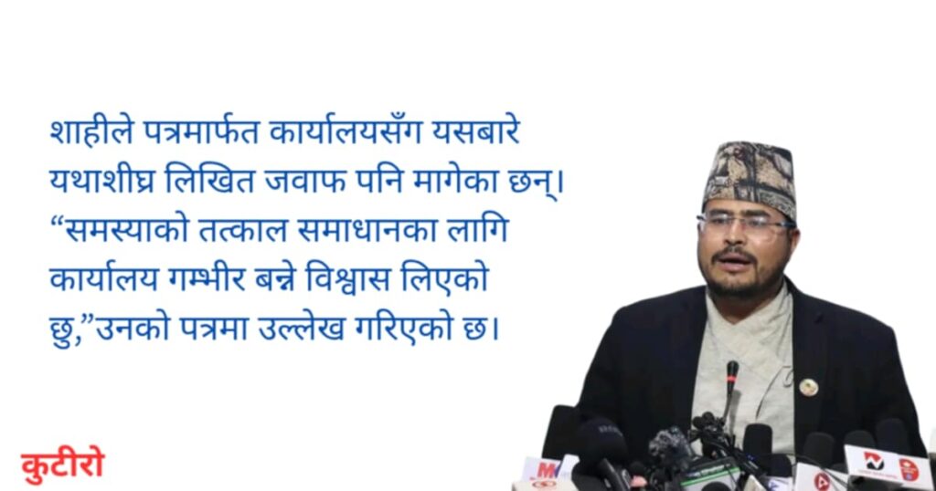 शाहीले पत्रमार्फत कार्यालयसँग यसबारे यथाशीघ्र लिखित जवाफ पनि मागेका छन्। “समस्याको तत्काल समाधानका लागि कार्यालय गम्भीर बन्ने विश्वास लिएको छु,”उनको पत्रमा उल्लेख गरिएको छ। प्रतिनिधिसभा सदस्य तथा जुम्ला जिल्लाका प्रत्यक्ष निर्वाचित सांसद ज्ञान बहादुर शाहीले जुम्ला बजारदेखि नाग्मासम्म निर्माणाधीन कालोपत्रे सडकको गुणस्तरप्रति गम्भीर चिन्ता व्यक्त गर्दै सडक डिभिजन कार्यालय, जुम्लालाई औपचारिक रुपमै ध्यानाकर्षण गराएका छन्। […]
