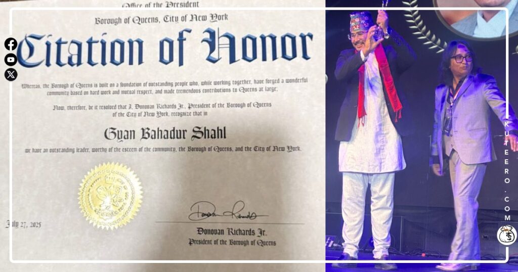 कार्यक्रम आयोजक ‘हामी ग्लोबल नेपाली’ को तर्फबाट सामाजिक योगदानलाई मूल्यांकन गर्दै उनलाई यो अवार्ड प्रदान गरिएको जनाइएको छ। ‘हामी ग्लोबल नेपाली’ नामक संस्था द्वारा अमेरिकाको न्युयोर्कमा आयोजित एक भव्य समारोहमा सामाजिक अभियन्ता ज्ञानेन्द्र शाहीलाई ‘ग्लोबल हिरो अवार्ड’ प्रदान गरिएको छ। यो सम्मानसँगै शाहीले कर्णाली र जुम्ली जनताका साथै देश–विदेशमा रहेका सम्पूर्ण नेपालीहरूप्रति आभार व्यक्त गर्दै […]