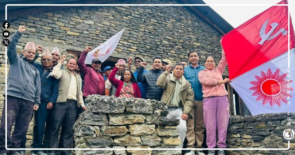 भाद्र २४ गते जेन-जी आन्दोलनको क्रममा तोडफोड र आगजनी भएको नेकपा एमालेको पार्टी कार्यालय जुम्लामा पार्टीको झण्डै र चुनाव चिन्ह फहराइएको छ। हामी छिटै उट्छाैं भन्दै कार्याकर्ताले झण्डा राखेका हुन। “हाम्रो आस्था र हाम्रो बिचारकाे सान सधै उचाइमा रहनेछ,” एक कार्यकर्ताले भने।