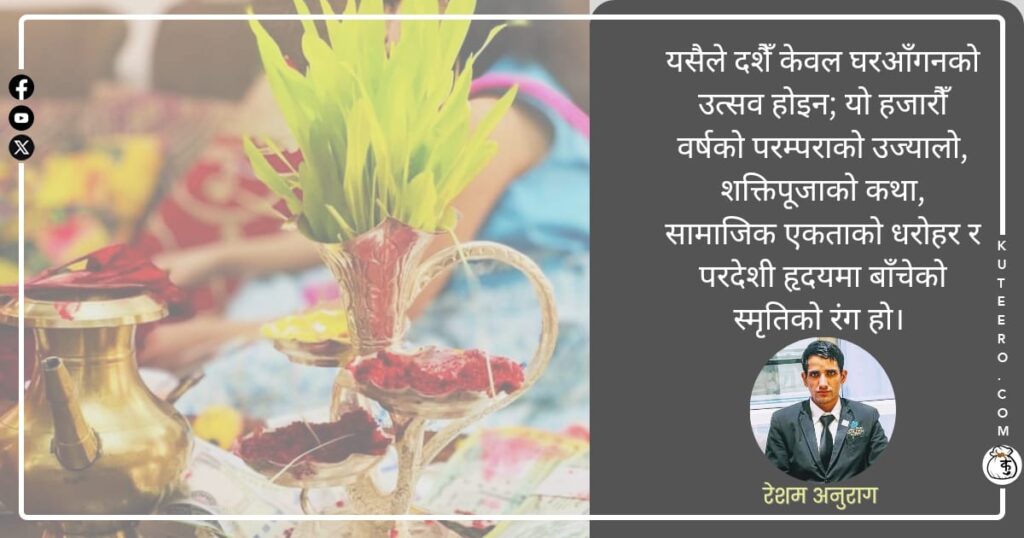 टिका र जमरालाई स्क्रिनमा हेर्ने त्यो क्षण, इतिहास र वर्तमानबीचको एउटा अधुरो पुलजस्तै लाग्छ। तर प्रवासमा बसे पनि दशैँको आत्मा मर्दैन। दशैँ नेपाली समाजको सबैभन्दा पुरानो र व्यापक सांस्कृतिक परम्परामध्ये एक हो। वैदिक कालदेखि शक्तिपूजाको परम्परा दक्षिण एसियामा प्रचलित थियो, जसको एउटा सशक्त रूप आज हामीले दुर्गा पूजासहितको दशैँमा देख्न सक्छौं। हिन्दू धर्मग्रन्थ अनुसार, देवी […]