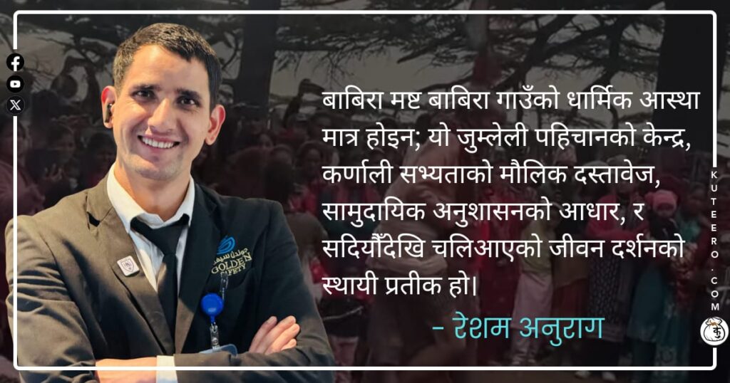 मौखिक इतिहास अनुसार बाबिरा क्षेत्रमा पुरानो समयमा एक ठूलो महामारी फैलिँदा गाउँका पुर्खाहरूले समष्टिगत प्रार्थना र शक्ति स्थापनाको विधिबाट मष्ट स्थापना गरेका थिए। त्यसबेलादेखि मष्टलाई गाउँको सुरक्षादाता, रोगको निवारक, बाली बिरुवाको रक्षक र सामाजिक विवाद समाधानकर्ता मान्ने परम्परा सुरु भयो। जुम्ला जिल्लाको तातोपानी–२ बाबिरामा अवस्थित बाबिरा मष्ट कर्णाली क्षेत्रको धार्मिक चेतना, सांस्कृतिक संरचना र स्थानीय […]