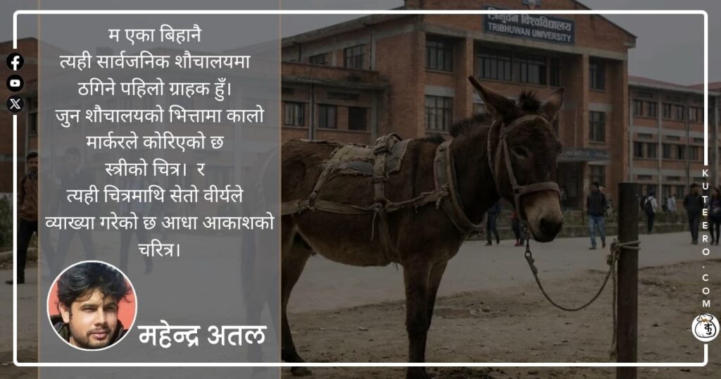 म त्यो घरकोदैलो नाघेर आएको हुँजुन घरको धुरी पुरुषको सोच र ढोका पुरुषको जुँगाले बनेको थियो। मैले त्यो आँगनको तगारो नाघेको हुँ।जहाँएउटै समयमाआधा मान्छे खुशीआधा मान्छे दुःखी देखिन्थे। मैले महसुस गरेको हुँ,सुख जोड दुःखबराबर शून्यहुन्छ। म पनि सुन्दै हिँडेको हुँशून्यको गीतशून्यको गीत गुनगुनाउँदै सकिन्छ जिन्दगी। म त्यही टोलको बाटो निस्किएको हुँ –जहाँ मिठो संगीतको धुनमाअल्लल्लि-अल्लल्लिछाती […]