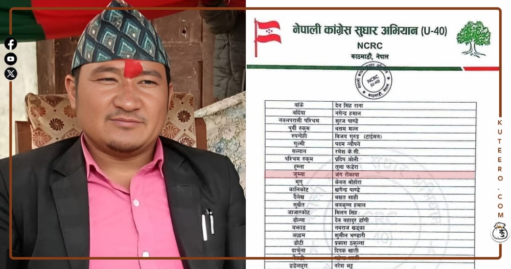 नेपाली कांग्रेस सुधार अभियानले जुम्लामा युवा नेतृत्वलाई अघि सार्दै तिला–६ का वडाध्यक्ष जंग रोकायालाई जिल्ला संयोजक चयन गरेको छ। शुक्रबार केन्द्रिय संयोजक समितिका संयोजक शिव रिमालले देशभरका जिल्ला संयोजक तोक्ने क्रममा जुम्लाका लागि रोकायाको नाम सार्वजनिक गरिएको हो। कांग्रेस सुधार अभियानले लामो समयदेखि पार्टीभित्र ४० वर्षमुनिका युवालाई सम्मानजनक स्थान दिनुपर्ने माग उठाउँदै आएको छ। पार्टीका […]