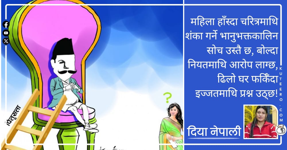 महिलालाई सानैदेखि सिकाइन्छ, चुप लाग्नु नै सबैभन्दा ठूलो गुण हो। पीडा सहनु धर्म हो। आँसु लुकाउनु कर्तव्य हो। घर जोगाउने नाममा उसको आत्मसम्मान दिनहुँ काटिन्छ। महिला बिहे गरेर घर पस्दा कुनै अपराध गरेर पस्दिनन्। तर हाम्रो समाजले उनलाई पहिल्यै दोषी ठहर गरिसकेको हुन्छ। माइतीको आँगन छोड्दा उनी थर मात्र नभई आफ्नो स्वतन्त्रता, आफ्नो आवाज र […]