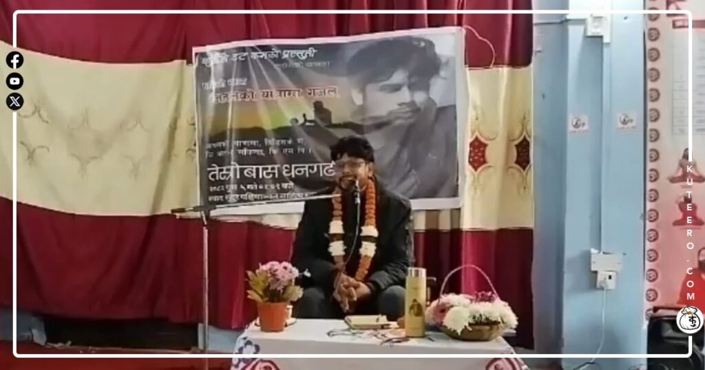 कुटीरो डटकमको प्रस्तुति कुटीरोको पहिलो यात्रामा महेन्द्र अतलको तेस्रो साहित्यिक बास धनगढीमा सम्पन्न भएको छ। शनिबार धनगढी स्थित सुदूर पश्चिमाञ्चल साहित्य समाजको सभा हलमा उक्त कार्यक्रम सम्पन्न भएको हो। महेन्द्र अतलको पहिलो बास जुम्ला सदरमुकाम खलंगा सम्पन्न भएको थियो भने त्यस्तै दोस्रो बास सुर्खेतको वीरेन्द्रनगरमा भएको थियो। तेस्रो बास कैलालीको धनगढीमा उनको चर्चित कविता गधाको […]