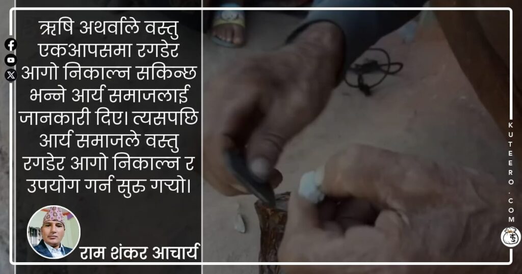 ऋषि अथर्वाले वस्तु एकआपसमा रगडेर आगो निकाल्न सकिन्छ भन्ने आर्य समाजलाई जानकारी दिए। त्यसपछि आर्य समाजले वस्तु रगडेर आगो निकाल्न र उपयोग गर्न सुरु गर्यो। जब यो विश्वमा सृष्टिको रचना भयो, त्यो जलवाट भयो। भने त्यसपछि अग्नि उत्पन्न भएको भनिन्छ। विश्व जिवहरू र मानव सभ्यताको विकासका लागि अग्नि जरुरी थियो। त्यसैले मानव जगतमा आगो कसरी […]