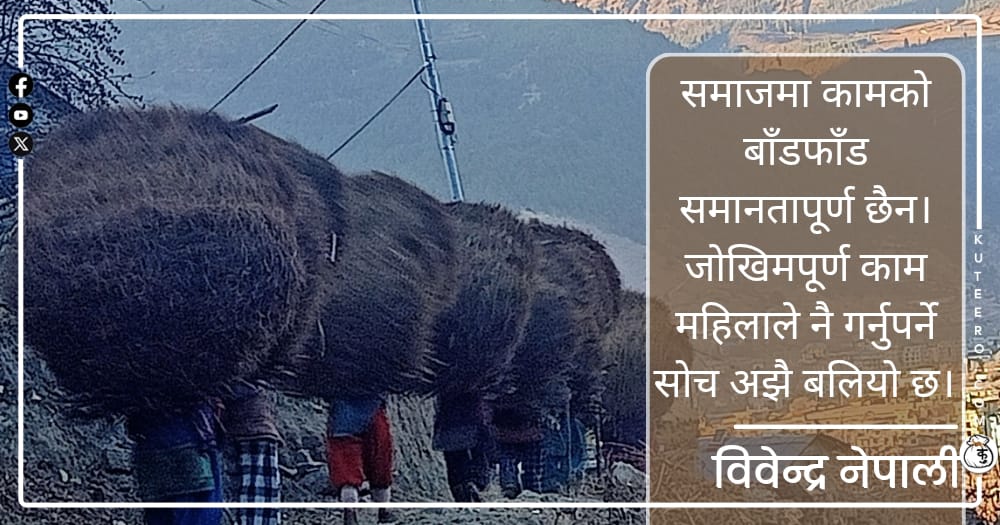 समाजमा कामको बाँडफाँड समानतापूर्ण छैन। जोखिमपूर्ण काम महिलाले नै गर्नुपर्ने सोच अझै बलियो छ। जुम्लामा यतिबेला महिलाको दैनिकी झनै कठोर बनेको छ। खेतीपातीको चटारो सकिएसँगै उनीहरू वनपाखातिर उक्लिन थालेका छन्। असोज, कात्तिकमा अन्न भित्र्याउने कामले थकित शरीर मंसिर, पुस लागेपछि फेरि स्याउला र दाउराको भारी बोकेर उकालो, ओरालो धाउन बाध्य छ। जुम्लाका प्रायः घरधुरीमा स्याउला […]