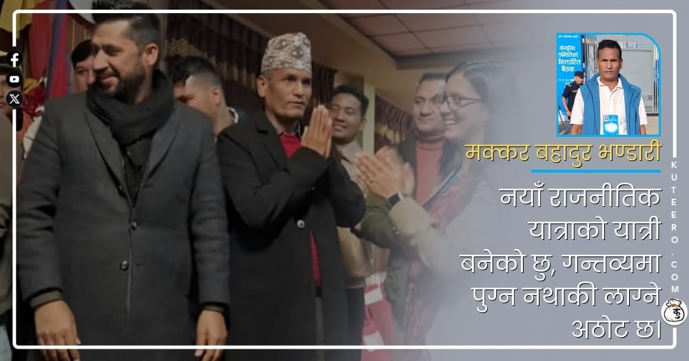 नयाँ राजनीतिक यात्राको यात्री बनेको छु, गन्तव्यमा पुग्न नथाकी लाग्ने अठोट छ। जुम्लाको चन्दननाथ नगरपालिका -१० को सामान्य किसान परिवारमा २०२३ साल फागुन ५ गते जन्मिएका मक्कर बहादुर भण्डारीको यतिबेला राष्ट्रिय स्वतन्त्र पार्टीको राजनीतिमा क्रियाशील छन्। परिवारिक स्रोत सीमित भएपनि शिर्क्षा आर्जनको सपनामा कुनै सीमा थिएन। बाल्यकालदेखि नै शिक्षालाई जीवन परिवर्तन गर्ने बलियो माध्यम ठान्ने […]