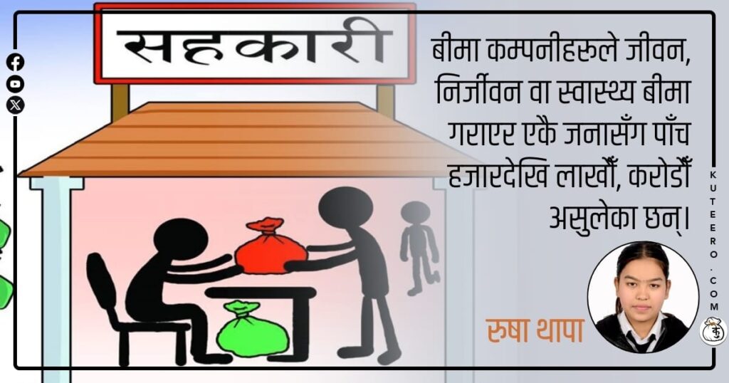 बीमा कम्पनीहरूले जीवन, निर्जीवन वा स्वास्थ्य बीमा गराएर एकै जनासँग पाँच हजारदेखि लाखौँ, करोडौँ असुलेका छन्। भोलि कुनै कारणवश इन्स्युरेन्स कम्पनी डुबेमा त्यही पाँचदेखि २५ लाख रकमबाट बीमा रकम भुक्तानी गर्नुपर्छ। बैंक, वित्तीय संस्था अर्थात् सहकारी, लघुवित्त, फाइनान्स सरकारको अनुमतिबाट सञ्चालन भएका छन्। साथै इन्स्युरेन्स, जलविद्युत तथा निजी कम्पनी पनि सरकारी निकायबाटै स्वीकृति लिएर सञ्चालन […]