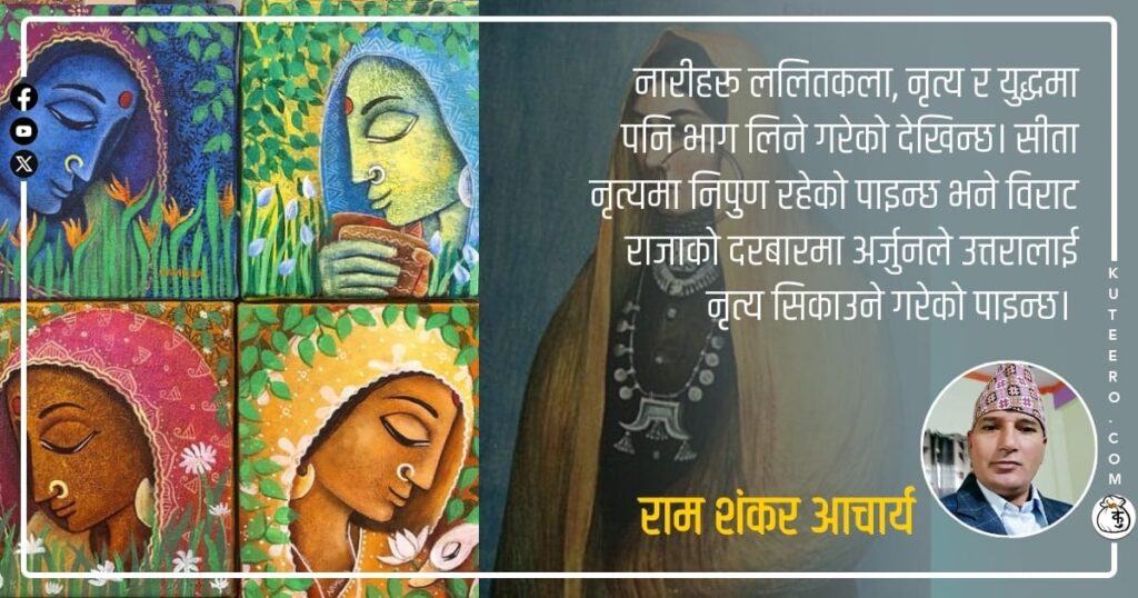 नारीहरू ललितकला, नृत्य र युद्धमा पनि भाग लिने गरेको देखिन्छ। सीता नृत्यमा निपुण रहेको पाइन्छ भने विराट राजाको दरबारमा अर्जुनले उत्तरालाई नृत्य सिकाउने गरेको पाइन्छ। आज पश्चिमी जगतले महिलाको अधिकार आफूबाट प्रदान गरिएको र आफ्नो अनुसरण विश्व दुनियाँले गर्नुपर्ने भन्दै जोड दिएर लागू गर्दै आएको छ। भने आर्य समाजले आफ्ना रीतिरिवाज, परम्परा र धर्मको आधारमा […]