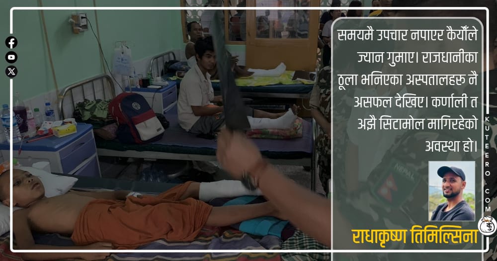 समयमै उपचार नपाएर कैयौँले ज्यान गुमाए। राजधानीका ठूला भनिएका अस्पतालहरू नै असफल देखिए। कर्णाली त अझै सिटामोल मागिरहेको अवस्था हो। नेपालले इतिहासका विभिन्न कालखण्डमा ठूलाठूला विपत्ति भोग्दै आएको छ। वि.सं. १९९० सालको भूकम्प, वि.सं. २०७२ सालको विनाशकारी भूकम्प, र परिवर्तनका नाममा गरिएका राजनीतिक आन्दोलनहरू त्यसका उदाहरण हुन्। यस्तै क्रमको पछिल्लो घटना वि.सं. २०८२ साल भदौ […]