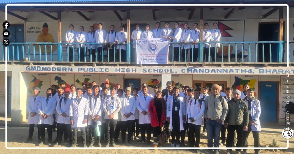 चिकित्सकहरूले विद्यार्थीहरूलाई व्यवहारिक ज्ञान र आवश्यक परामर्श दिएका थिए। यस्ता कार्यक्रमले भविष्यका चिकित्सकलाई समुदायसँग जोड्ने अवसर दिने उनीहरूको भनाइ थियो। कर्णाली स्वास्थ्य विज्ञान प्रतिष्ठानमा एमबीबीएस प्रथम वर्षका विद्यार्थीहरूले विद्यालय स्वास्थ्य कार्यक्रम सफलतापूर्वक सम्पन्न गरेका छन्। कार्यक्रम चन्दननाथ नगरपालिका-४ स्थित जीएमडी मोडर्न पब्लिक हाई स्कुलमा आयोजना गरिएको हो। एमबीबीएस प्रथम वर्ष पाँचौँ व्याचका ५० जना विद्यार्थीहरूको […]