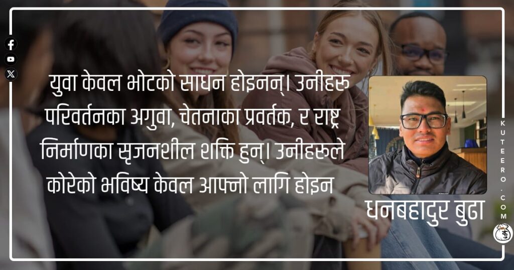 युवाले कोरेको सपना केवल आफ्नो भविष्यको लागि होइन। उनीहरूले देश, समाज र आमूल परिवर्तनका लागि आफ्नो शक्ति, जोश र सृजनशीलता लगाएका छन्। युवा केवल युवा होइनन्। उनीहरू राष्ट्र निर्माणको बलियो शक्ति हुन्। आँखामा नवीन सोच र हृदयमा आगो बोकेर उनीहरूले समाजको ढाँचा मात्र होइन, भविष्यको मार्गचित्र नै कोरिरहेका हुन्छन्। उनीहरू केवल आशा होइनन्, उनीहरू परिवर्तनका […]