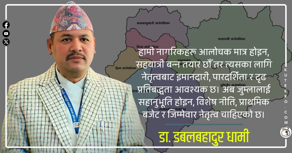 हामी नागरिकहरू आलोचक मात्र होइन, सहयात्री बन्न तयार छौँ तर त्यसका लागि नेतृत्वबाट इमानदारी, पारदर्शिता र दृढ प्रतिबद्धता आवश्यक छ। अब जुम्लालाई सहानुभूति होइन, विशेष नीति, प्राथमिक बजेट र जिम्मेवार नेतृत्व चाहिएको छ। आदरणीय जुम्लाका राजनीतिक नेतृत्वज्यूहरू,जुम्ला केवल एउटा जिल्ला मात्र होइन; यो सिँजा सभ्यताको उद्गमस्थल, कर्णाली सभ्यताको मुटु र नेपालको ऐतिहासिक चेतनाको आधारभूमि हो। […]