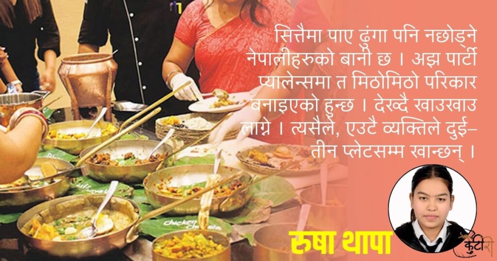 सित्तैमा पाए ढुंगा पनि नछोड्ने नेपालीहरुको बानी छ । अझ पार्टी प्यालेन्समा त मिठोमिठो परिकार बनाइएको हुन्छ । देख्दै खाउखाउ लाग्ने । त्यसैले, एउटै व्यक्तिले दुई–तीन प्लेटसम्म खान्छन् । पछिल्लो समय साना–ठूला सबै कार्यक्रम पार्टी प्यालेन्समा गर्न थालिएको छ । बर्थ डेदेखि बेवी सावर, विवाह, ब्रतवन्धसम्म पार्टी प्यालेन्समा राखिने गरिएको छ । पार्टी प्यालेन्समा प्लेट […]