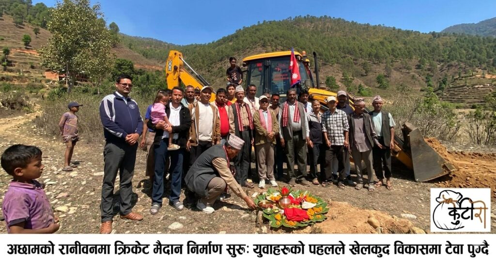 अछामको रानीवनमा क्रिकेट मैदान निर्माण सुरु: युवाहरूको पहलले खेलकुद विकासमा टेवा पुग्दै