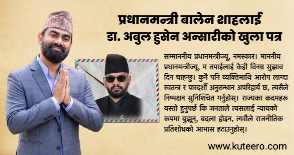प्रधानमन्त्री बालेन शाहलाई डा. अबुल हुसेन अन्सारीको खुला पत्र