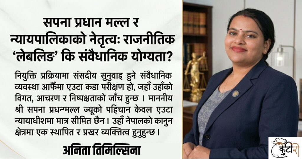 माननीय श्री सपना प्रधान मल्ल र न्यायपालिकाको नेतृत्वः राजनीतिक ‘लेबलिङ’ कि संवैधानिक योग्यता ?