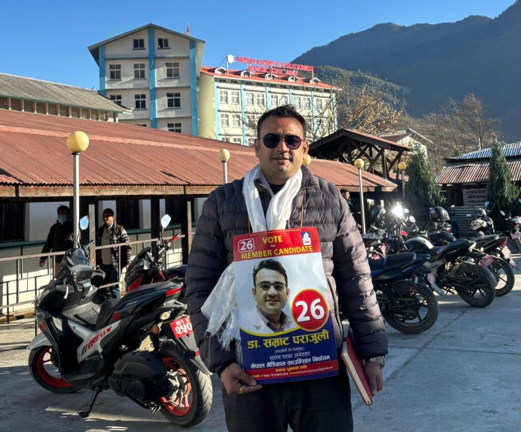 सदस्य पदका उम्मेदवार डा. सम्राट पराजुली पछिल्ला केही दिनयता विकटका अस्पतालदेखि शहरी केन्द्रसम्मका चिकित्सकहरूसँग सक्रिय रुपमा भेटघाट र छलफलमा व्यस्त छन्।