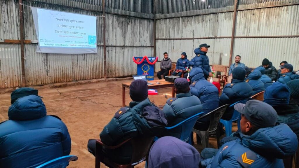 हिमाली जिल्ला जुम्लामा कार्यरत सुरक्षाकर्मीका लागि स्वास्थ्य सचेतना कार्यक्रम सम्पन्न भएको छ। जिल्ला प्रहरी कार्यालय जुम्ला र ओम मनिस पोलिक्लिनिकको सहकार्यमा कार्यक्रम आयोजना गरिएको हो।