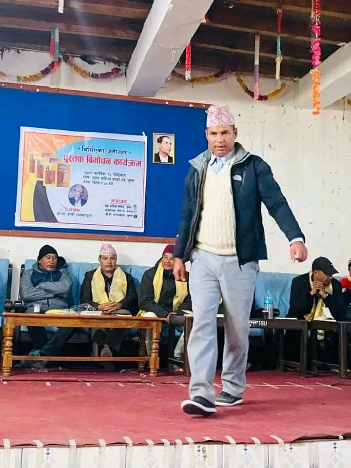 साहित्यिक चौतारी कर्णाली प्रदेश शाखाले आयोजना गरेको विमोचन कार्यक्रम वरिष्ठ साहित्यकार रामकृष्ण बुढ्थापा ‘परिमल जुम्ली’ सभाध्यक्षतामा भएको थियोे।