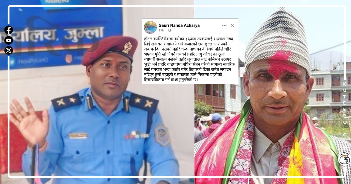 जिल्ला समन्वय समिति जुम्लाका प्रमुख गौरीनन्द आचार्यले सामाजिक सञ्जाल फेसबुकमा जुम्लाको सुरक्षा चुनौतीमाथि गम्भीर टिप्पणी गरेका छन्।