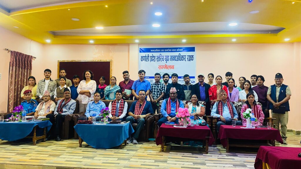 ‘मानव अधिकार तथा सामाजिक न्याय’ नारासहित साथ कर्णाली प्रदेशस्तरीय युवा मानवअधिकार रक्षकहरुको २ दिने सम्मेलन सुर्खेतमा सुरु भएको छ।