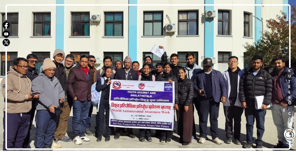 निम्याट नेपालको आयोजनामा विश्व प्रतिजैविक प्रतिरोध सप्ताह कार्यक्रम जुम्लामा मनाइएको छ।’प्रतिजैविक प्रतिरोध विरुद्ध युवा अभियान’मूल नारासहित जुम्लामा आज विश्व प्रतिजैविक प्रतिरोध सचेतना सप्ताह मनाइएको हो।