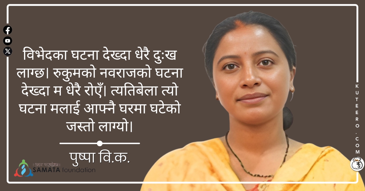 विभेदका घटना देख्दा धेरै दुःख लाग्छ। रुकुमको नवराजको घटना देख्दा म धेरै रोएँ। त्यतिबेला त्यो घटना मलाई आफ्नै घरमा घटेको जस्तो लाग्यो।